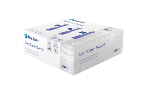 The DentiCare Swivel line of prophy angles is designed for comfort and control. Choose from three options: soft cup for gentle polishing, firm cup for effective plaque removal, or tapered brush for precision cleaning between teeth. Each angle features a consistent 70° oscillation, minimizing splatter for a cleaner procedure and more comfortable experience for the patient. Optimize every polishing session with DentiCare Swivel single-use prophy angles.